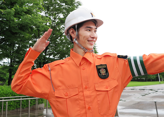 私たちの職場は、気持ちも晴れ渡る空の下。路上での警備の仕事がメインです。オフィスワークのような難しい人間関係は必要なく、一定の距離感を保ちながら自分のペースで仕事ができます。もちろん、仕事の疲れを分かち合いたいときは、理解しあえる仲間もいます。